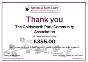 By and large, this involves representing residents’ views to Woking Borough Council, Surrey County Council, the managing agents of the shopping centre and any other organisation that may impact Goldsworth Park.