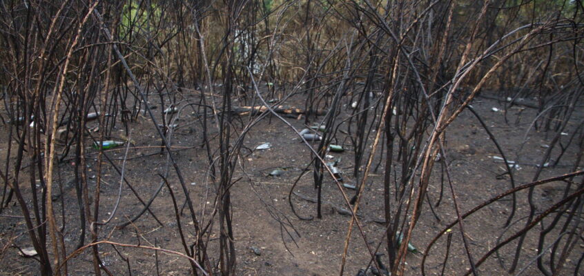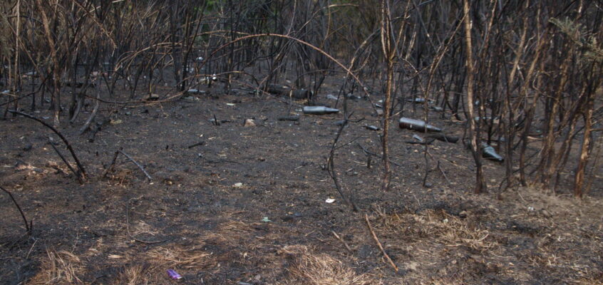 A large section of gorse was destroyed. It revealed all sorts of debris including bottles, pans and a cigarette lighter!
